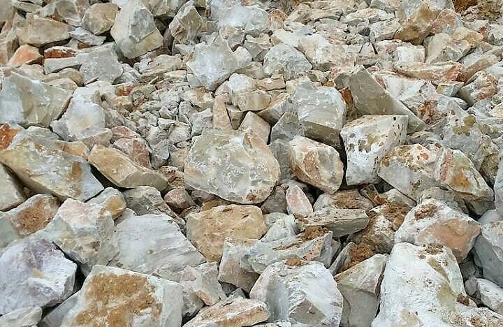 大塊葉臘石經破碎機破碎到能進入磨粉機的入料細度(15mm-50mm)。