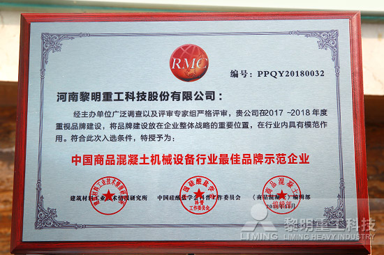 經(jīng)主辦單位廣泛調(diào)查以及評審專家組嚴(yán)格評審,黎明重工2017-2018年度重視品牌建設(shè)的突出表現(xiàn),在中國商品混凝土行業(yè)企業(yè)專家委員會第四屆第二次會議上,黎明重工獲得“中國商品混凝土機械設(shè)備行業(yè)最佳品牌示范單位”。