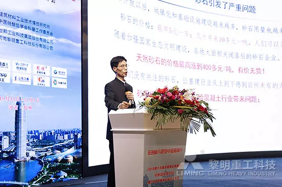 中國(guó)砂石協(xié)會(huì)胡幼奕會(huì)長(zhǎng)作題為《砂石與混凝土產(chǎn)業(yè)的融合發(fā)展》報(bào)告。