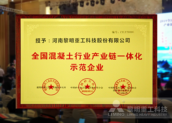 黎明重工獲“全國混凝土行業(yè)產(chǎn)業(yè)鏈一體化示范企業(yè)”殊榮
