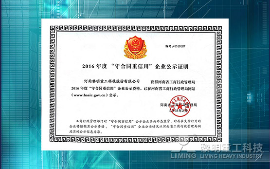 近日,河南省工商行政管理局對2016年度守合同重信用企業進行公示,黎明重工憑借在經營、管理、納稅等方面的出色表現力和良好的企業影響力,獲此殊榮。 守合同重信用企業是為推動社會信...