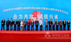 近日,黎明重工受邀參加河南省2014誠信興商宣傳月啟動儀式暨商企誠信承諾簽名活動。在河南省各廳局領導、各誠信經營示范單位和誠信企業家代表、新聞媒體記者等現場簽名與誠信宣言的見...