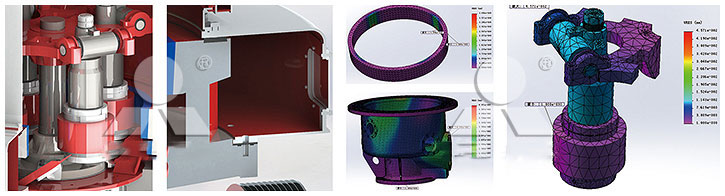 部件均采用高標準的原材料及優良的加工工藝制造而成,部分結構設計有雙層耐磨板,重要零件采用有限元動態分析,模擬結構力狀態,優化結構設計,壽命可提升1-2倍。