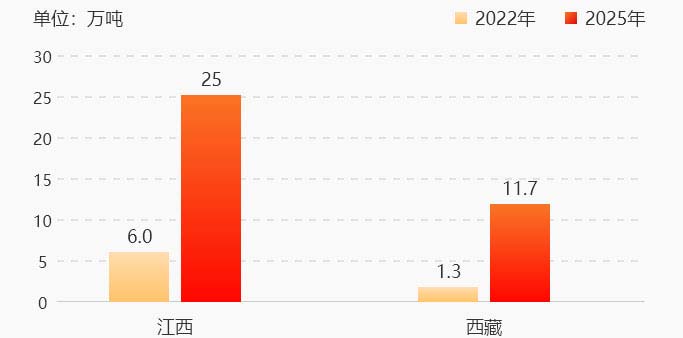 萬噸,占據全國資源總產出量60%以上。江西2025將接近25LCE萬噸,