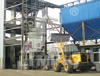礦渣原料由鏟車取料、喂料,通過皮帶機進行輸送。在輸送過程中,礦渣原料先后經由除鐵器和振動篩除鐵和篩分,然后通過提升機進入LM立式磨粉機進行粉磨。粉磨后的礦渣借助熱風爐提供的熱風,通過選粉機進行選粉,同時烘干。符合細度要求的礦渣粉后被輸送到收塵器收集、盛放后,由空氣輸送斜槽、提升機進入成品庫中儲存。